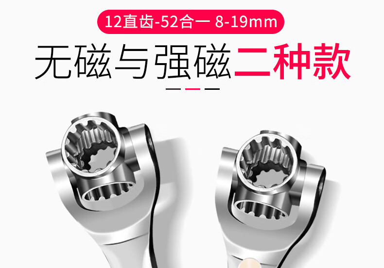 韩曼柯 多功能扳手多功能套筒扳手套装8八合一万向旋转多头扳手 套柄八合一扳手8-21【带磁】