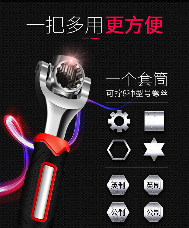 商品名称:韩曼柯 多功能扳手多功能套筒扳手套装8八合一万向旋转多头扳手 套柄八合一扳手8-21【带磁】
